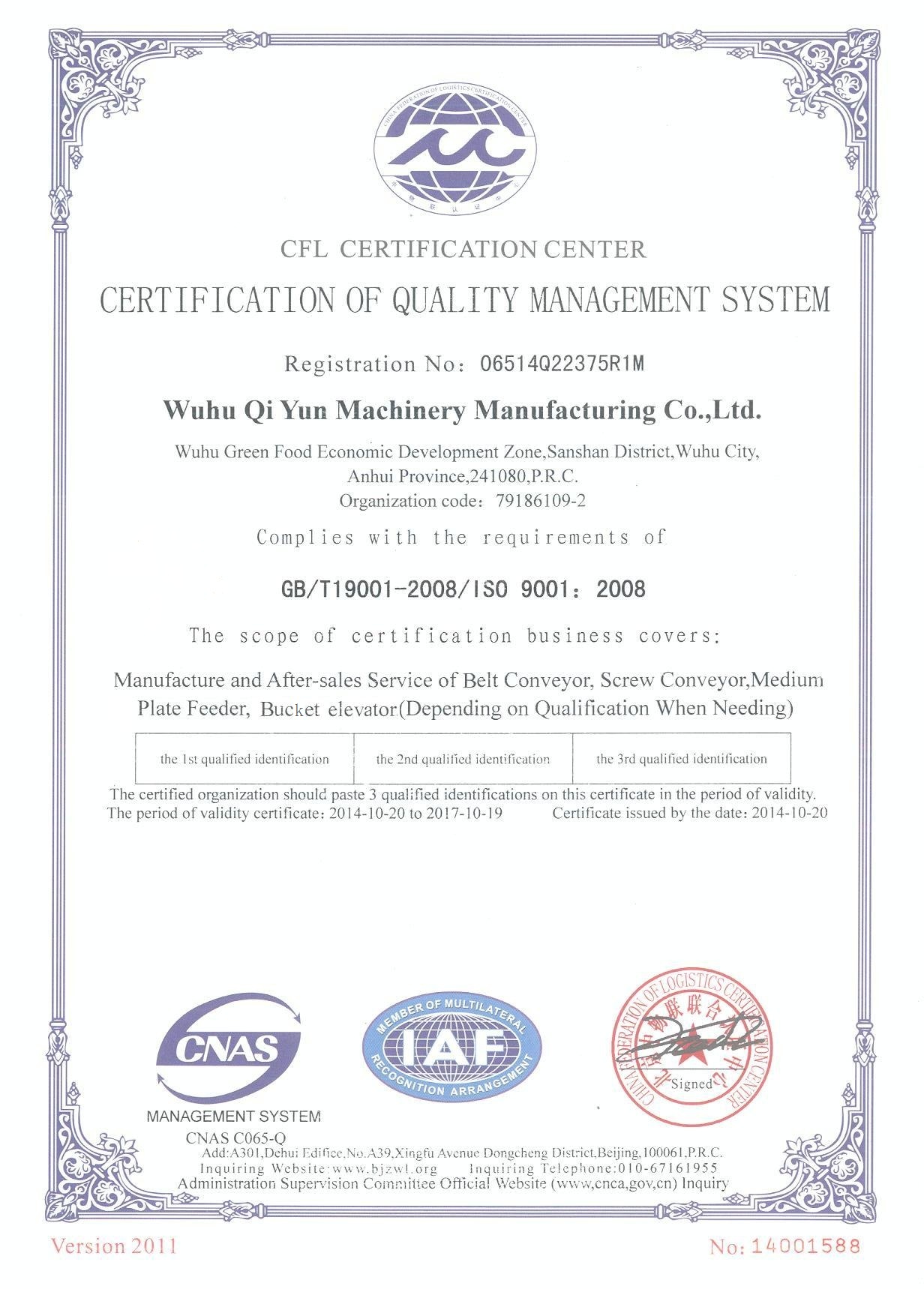 擁有專利特有技術(shù)的“蕪起”牌斗式提升機(jī)以其優(yōu)秀的品質(zhì)、優(yōu)越的環(huán)保性獲得用戶的青睞。產(chǎn)品遍布全國。。。。